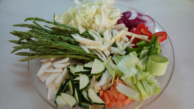 Cuando me apetece hecho mano de lo que tenga en el frigorífico y lo adapto a lo que haya, en esta ocasión lo he hecho con las verduras que os digo a continuación y con solomillo de toro de lidia.